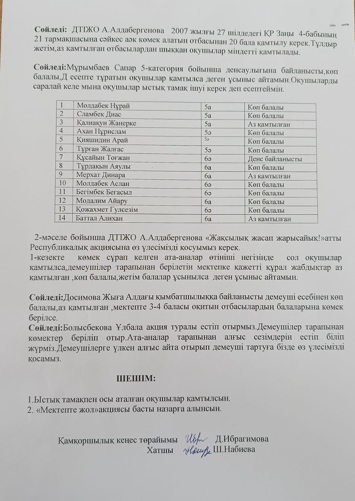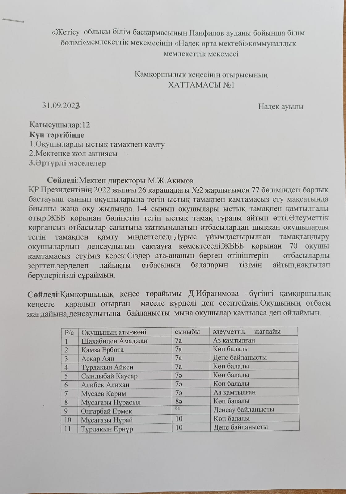 Қамқоршылық кеңесі отырысының хаттамасы » Надек орта мектебі