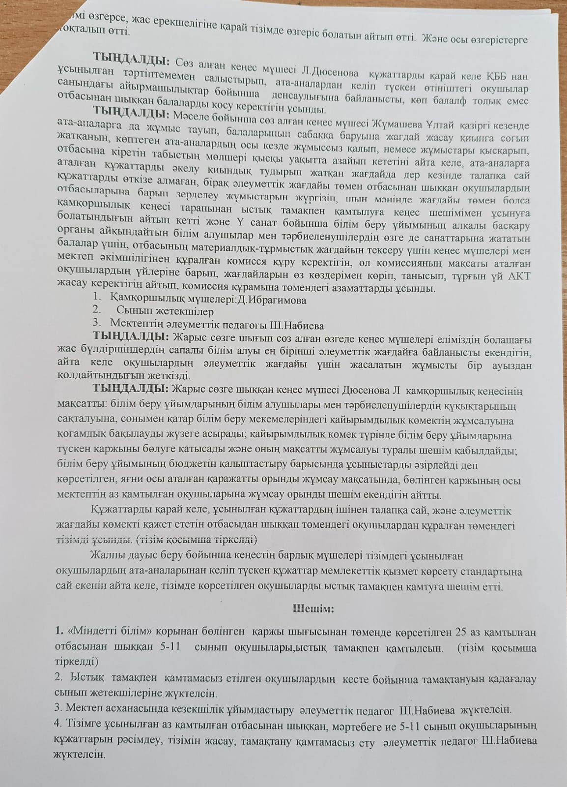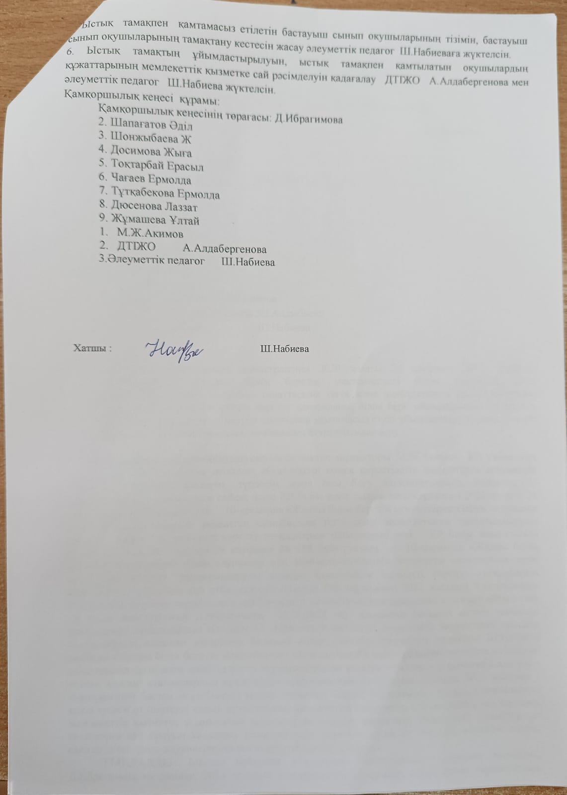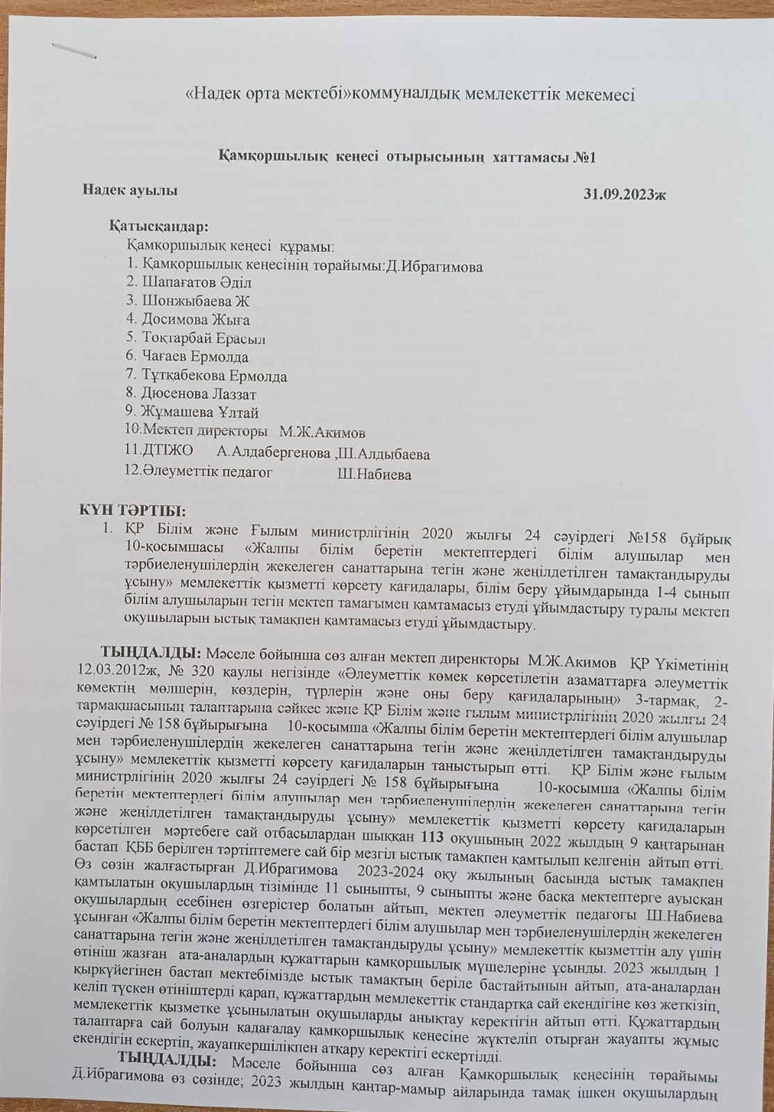 Қамқоршылық кеңесінің хаттамасы » Надек орта мектебі
