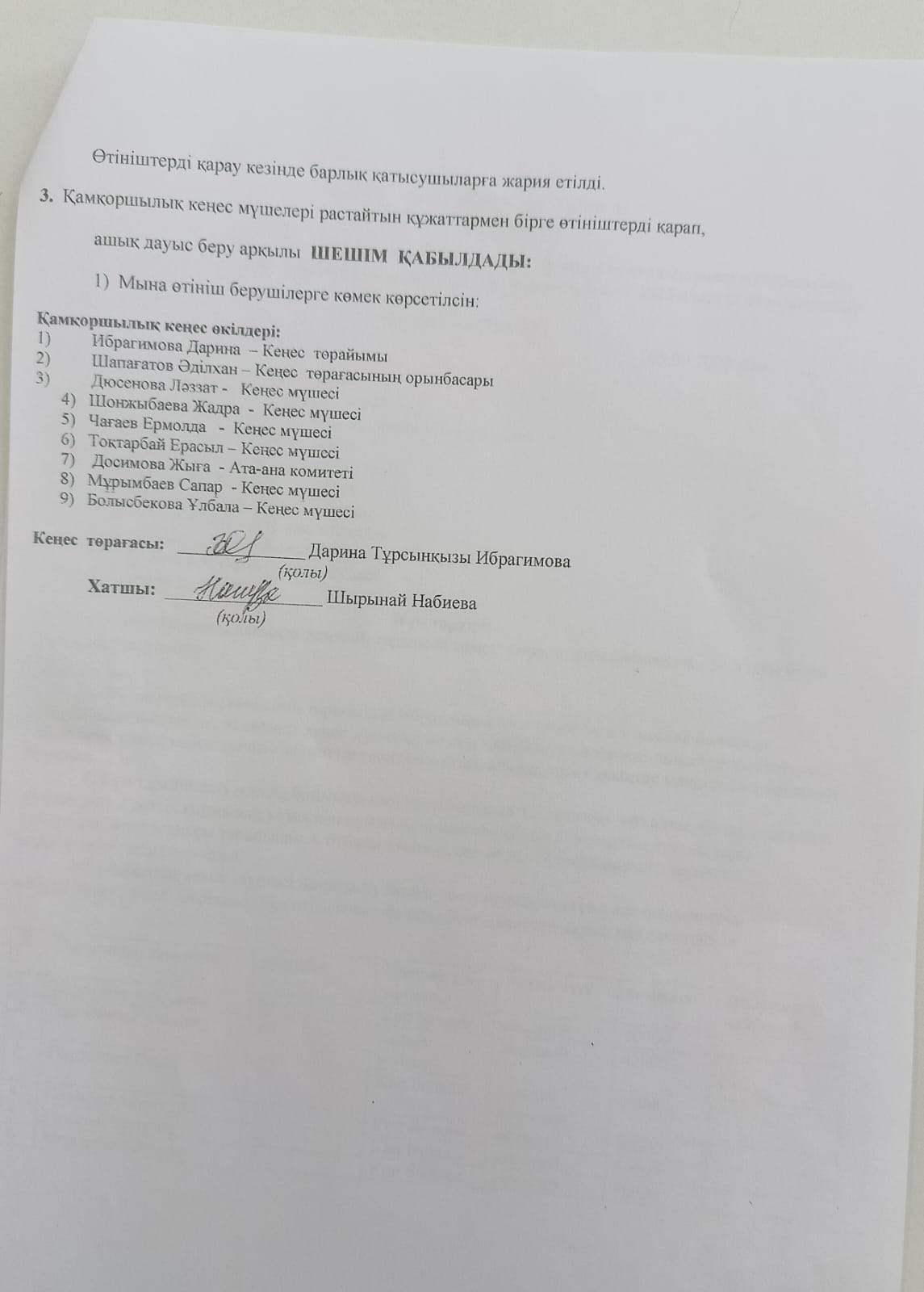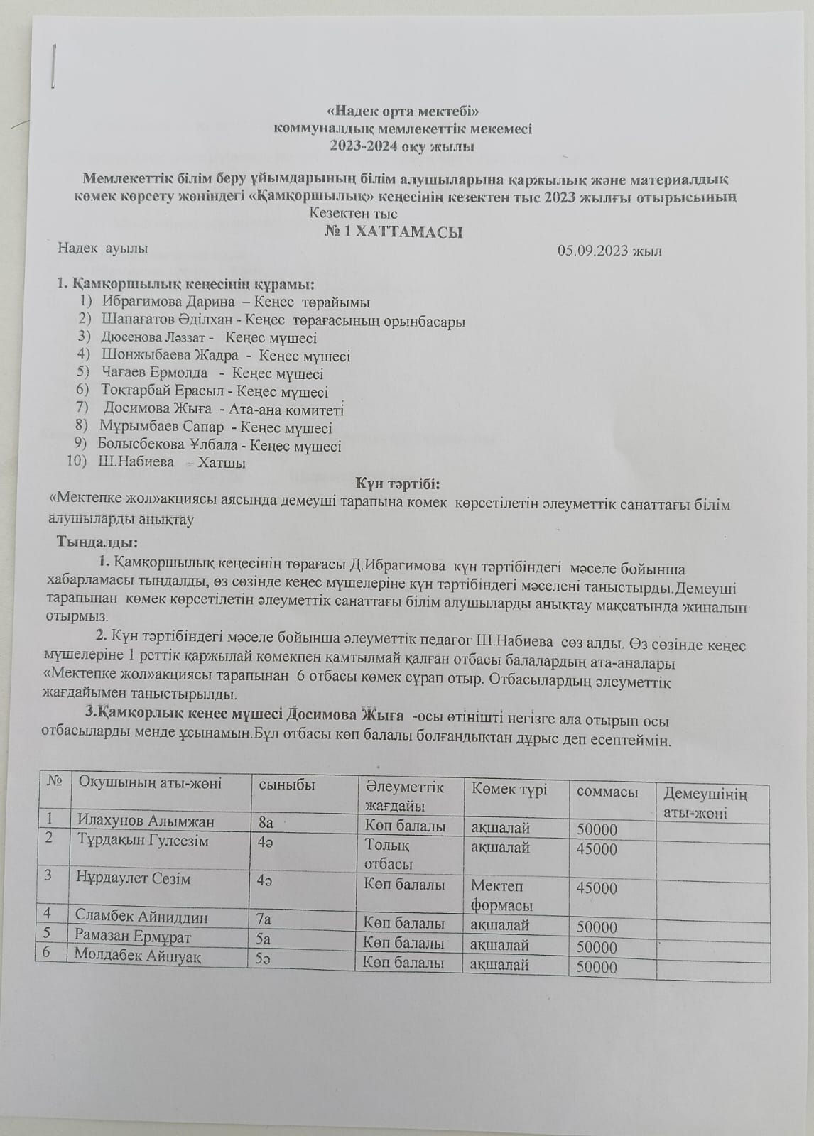 Қамқоршылық кеңесінің кезектен тыс отырысы » Надек орта мектебі