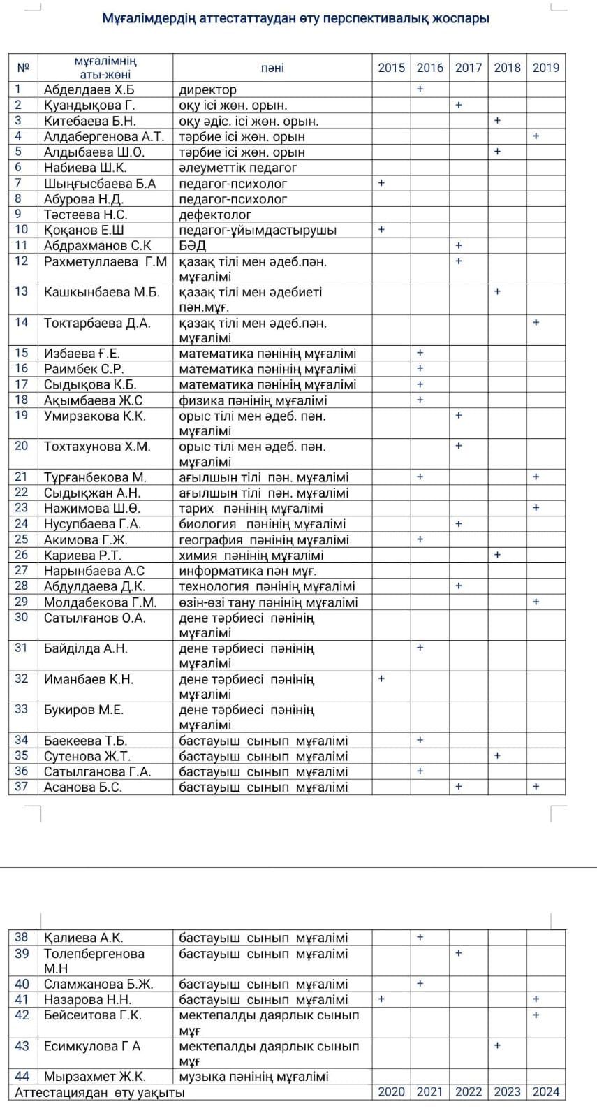 Мұғалімдердің аттестаттаудан перспективалық жоспары