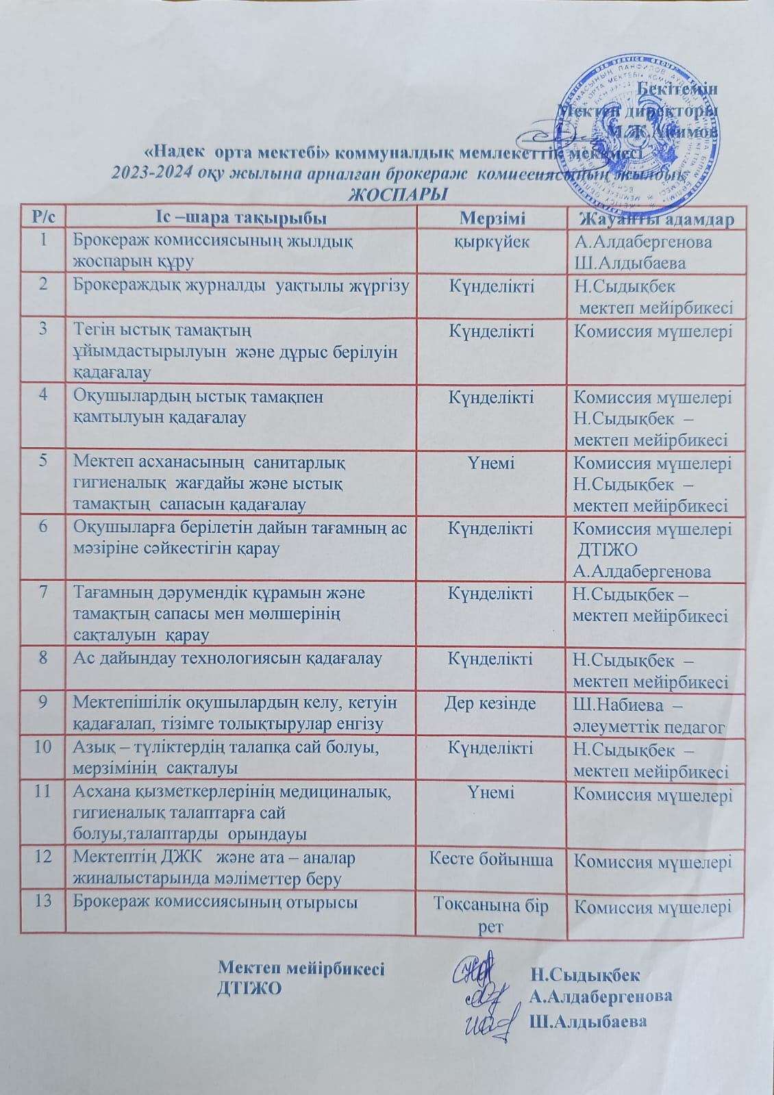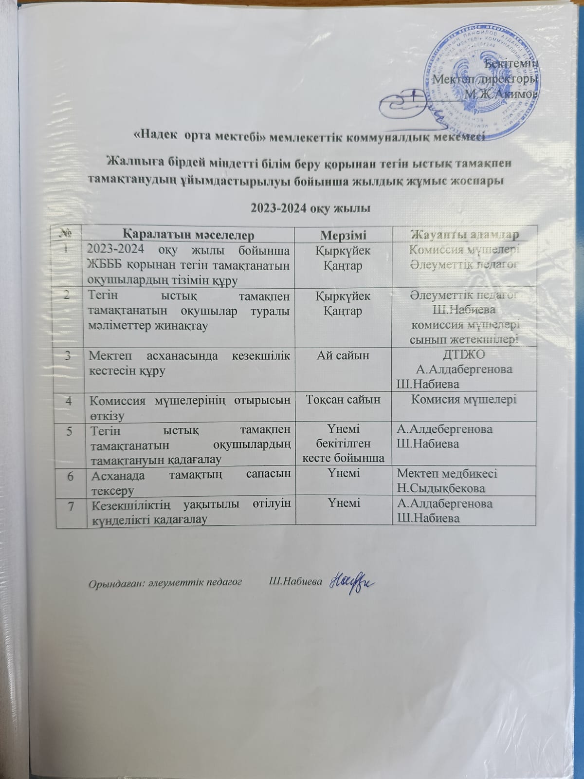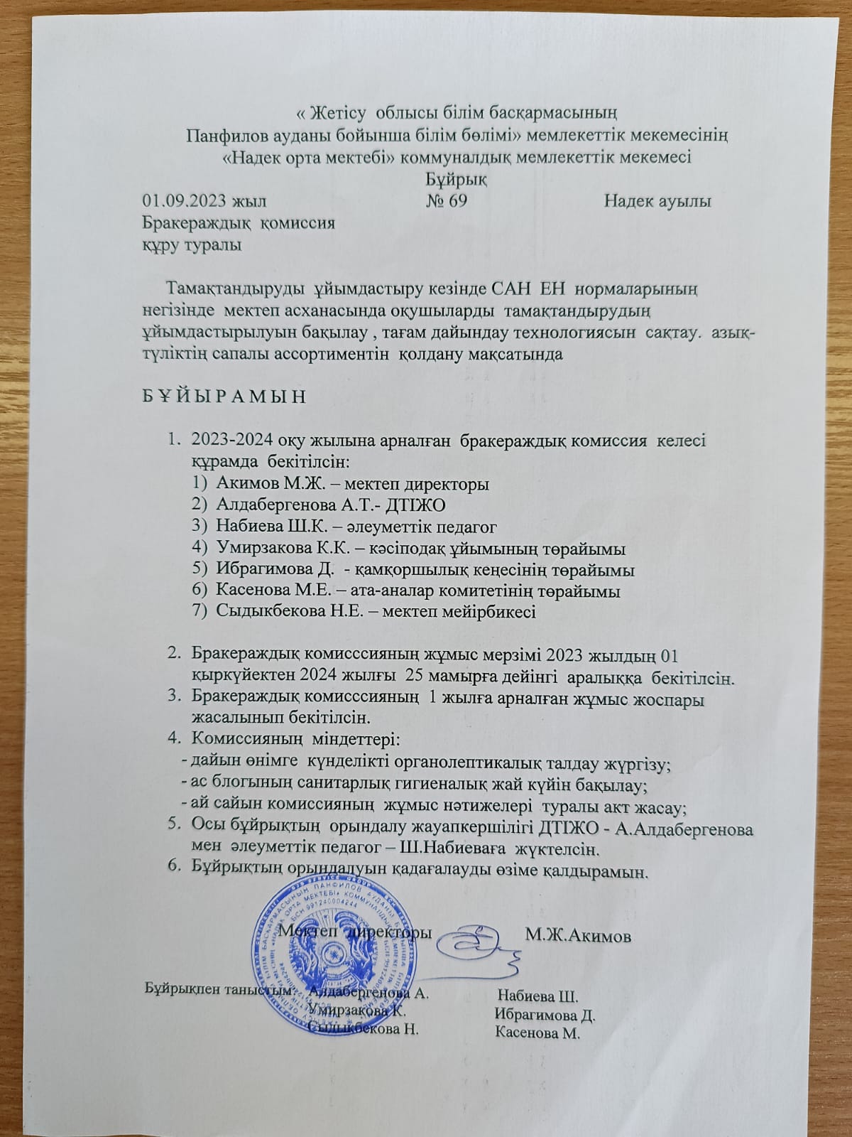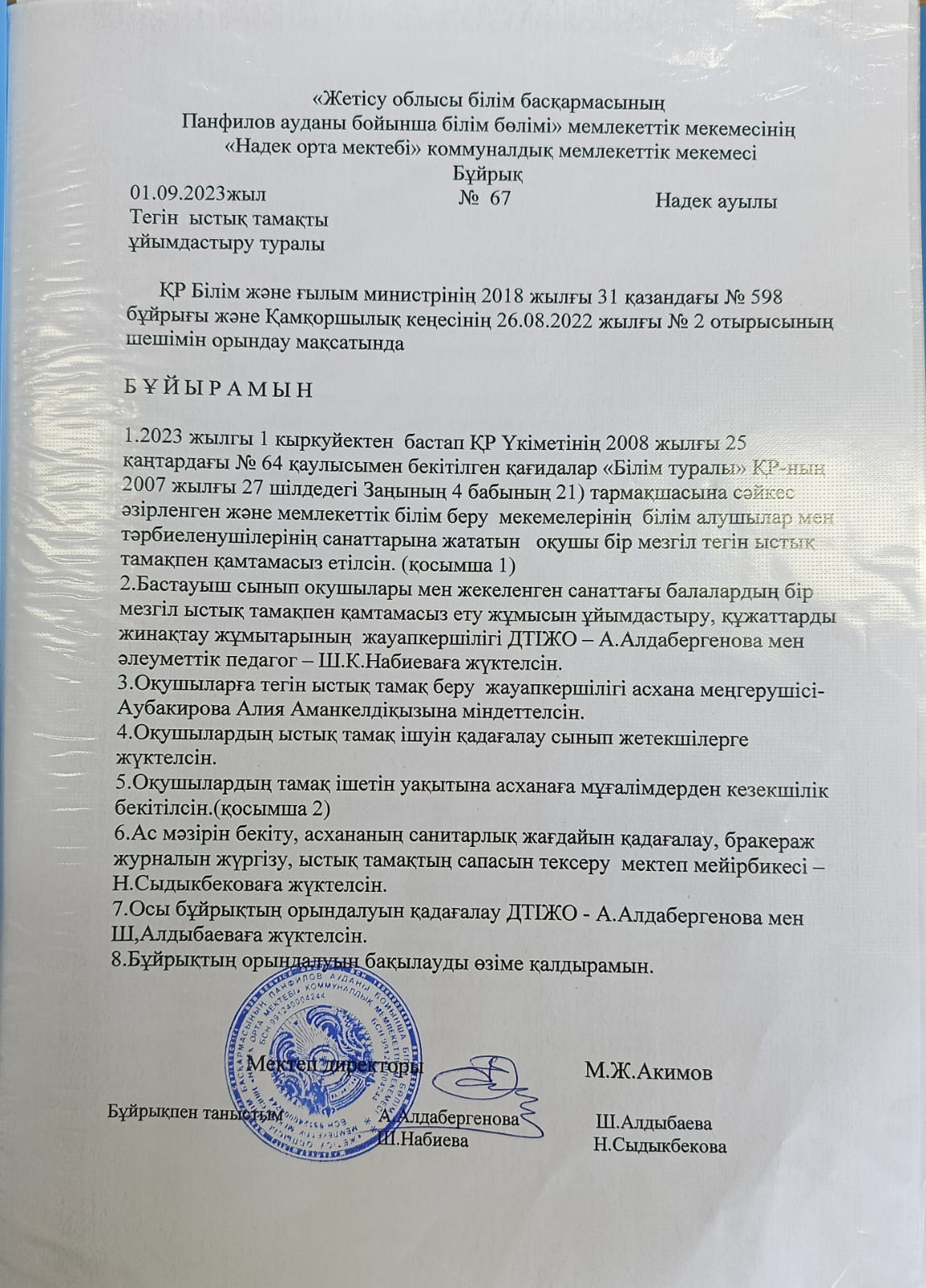 Тегін ыстық тамақ бойынша құжаттар » Надек орта мектебі